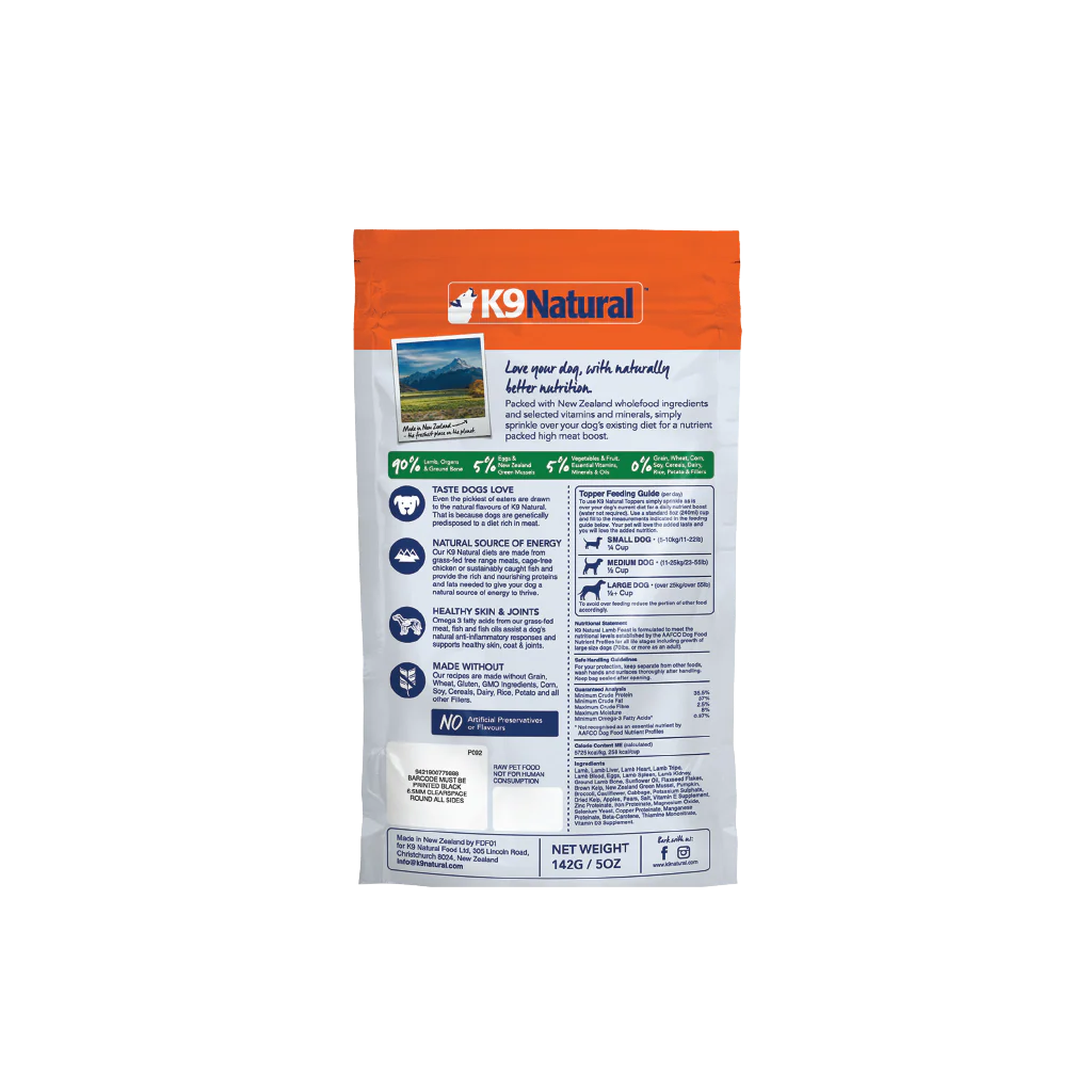 K9 NATURAL FD LAMB TOPPER 100G